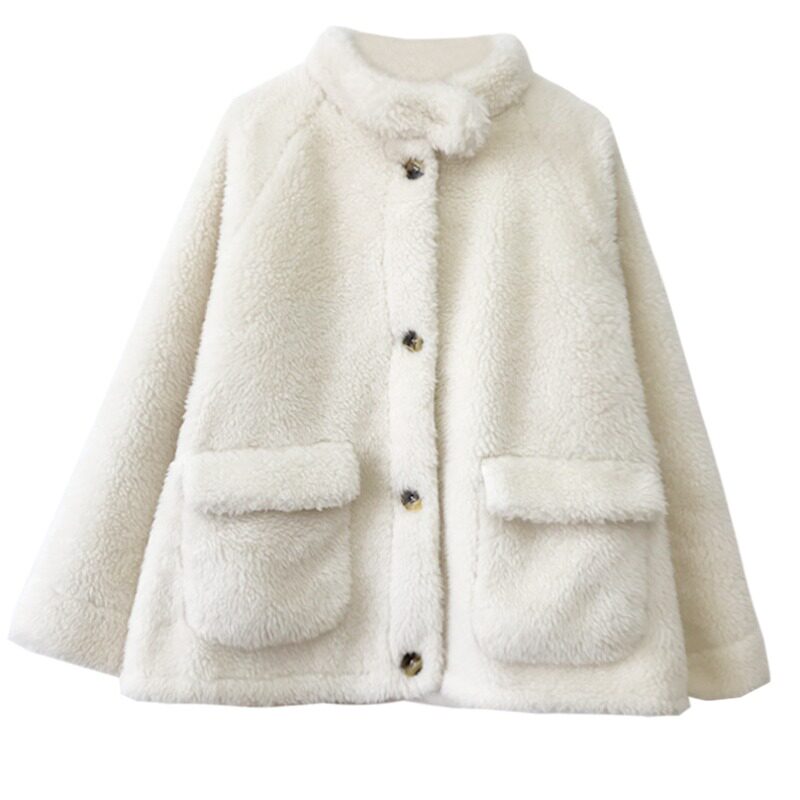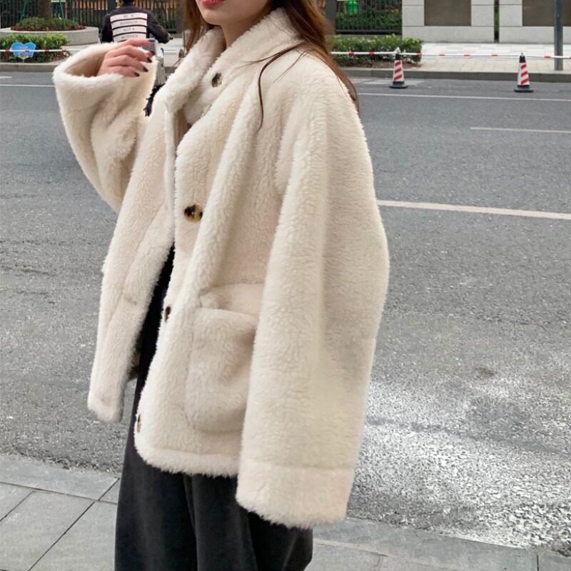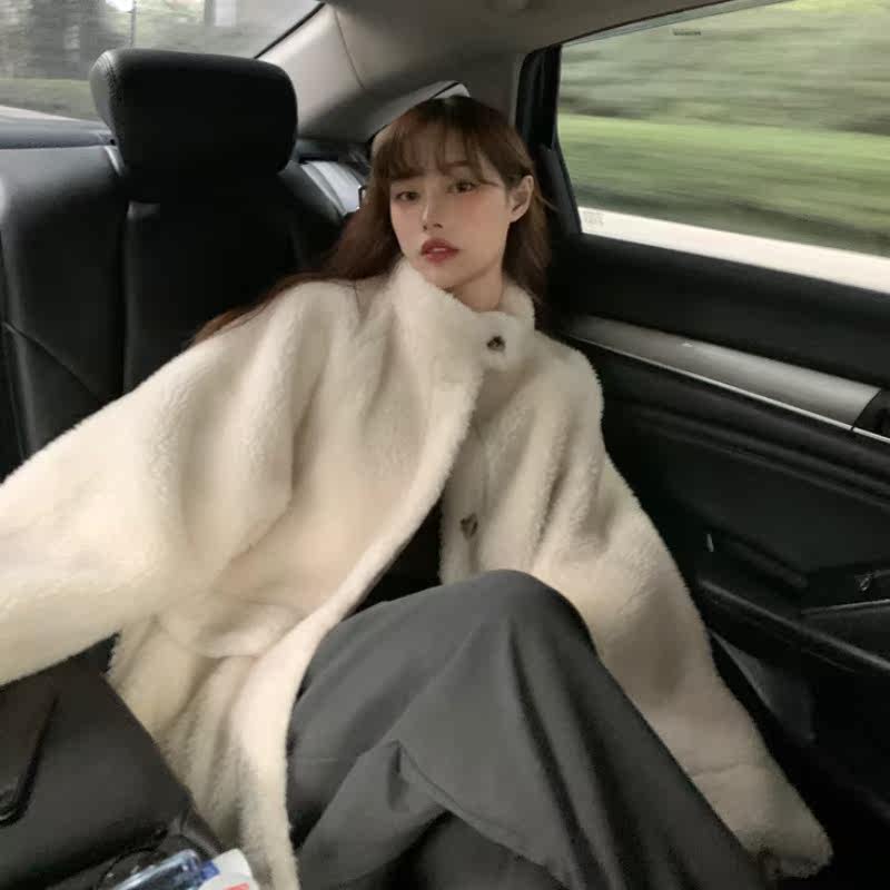 celine pianna white lamb wool coat female winter Korean version loose fashion thickened plush blouse