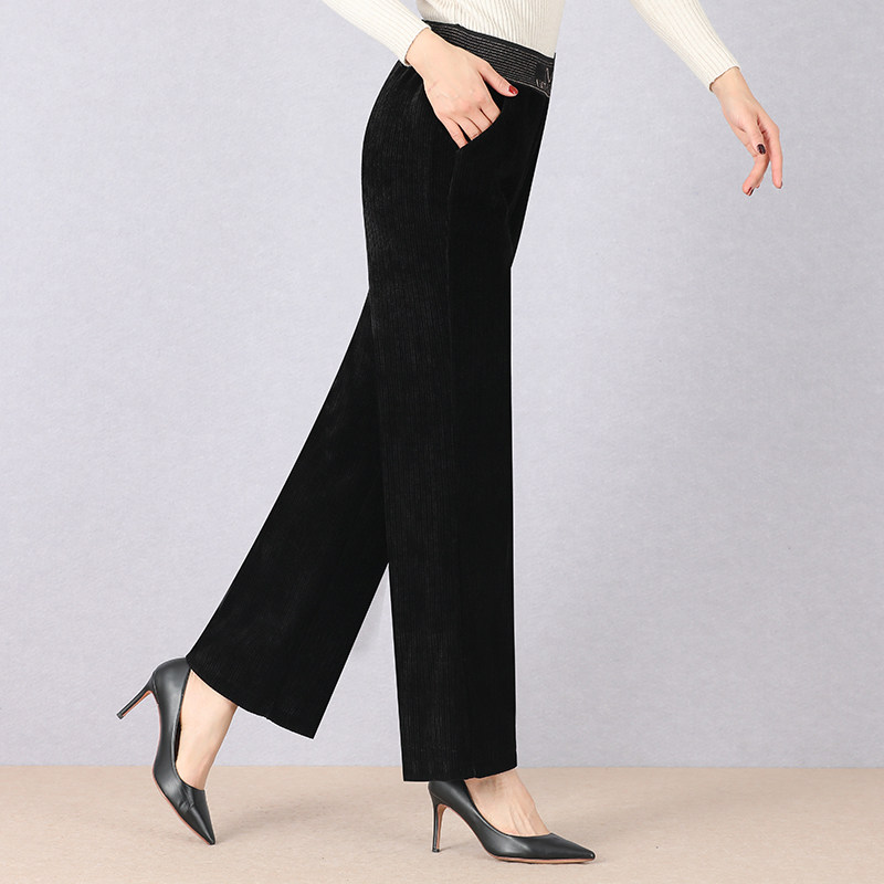 Middle Aged Light Core Suede Female Mum Wide Leg Pants Spring Autumn Bars Suede Pants Women Dress Trousers External Wear Pants Straight Barrel Casual Pants