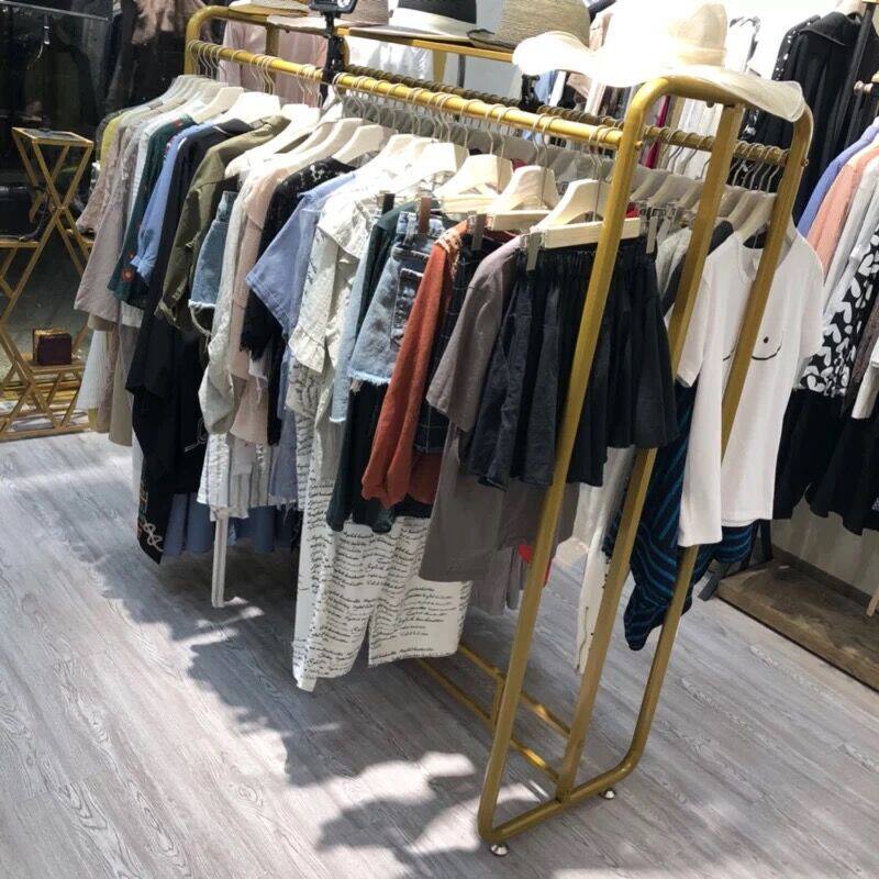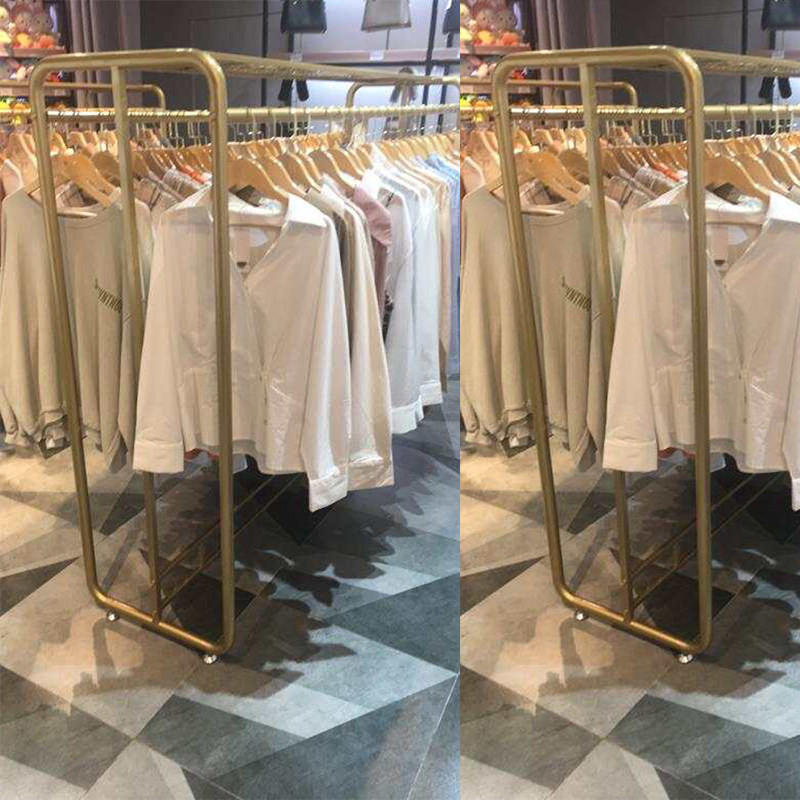 Clothing Store Display Rack Tennis Red Floor Type Women's Clothing Store Shelf Display Rack Double Row Middle Island Rack Double-Hanger Clothes Hanger