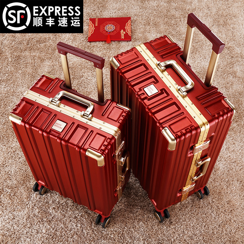 Stay With Wedding Box Suitcase Wedding Bride Dowry Press Case Woman Wedding Celebration Box Red Case Lalever Box Wine Red Leather Case