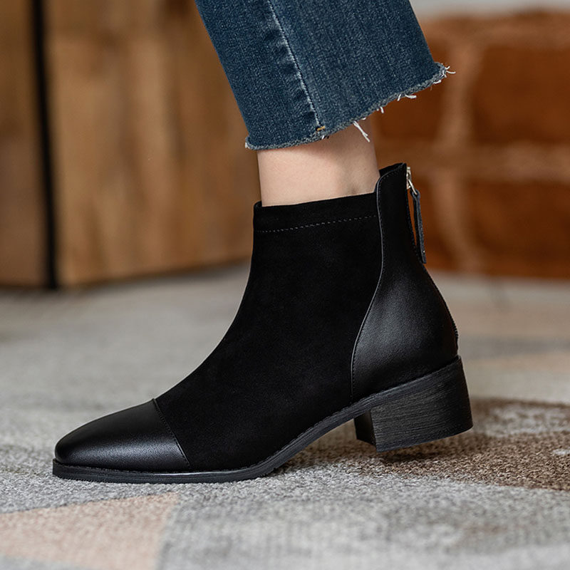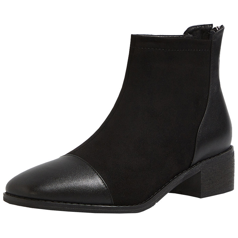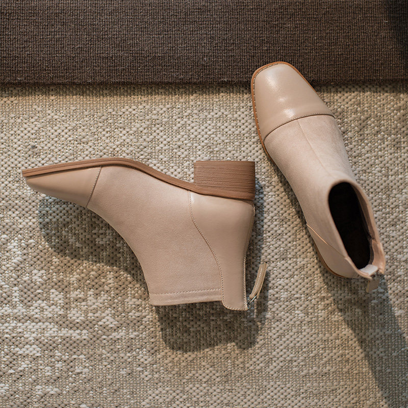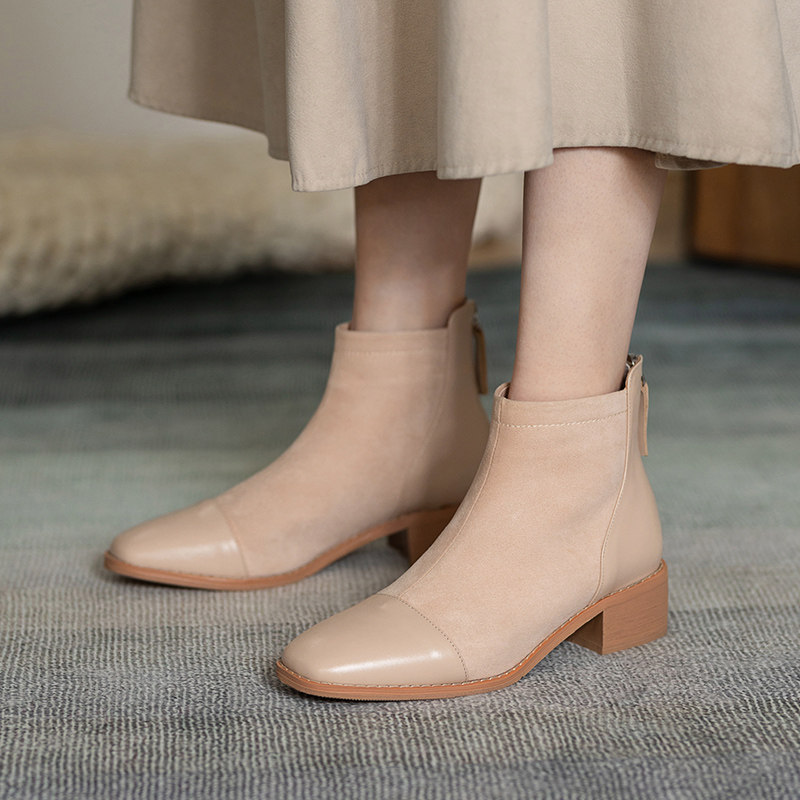 M L Monroe super beautiful new all-match ~ apricot short boots women's thick heel medium heel round toe suede thin short boots