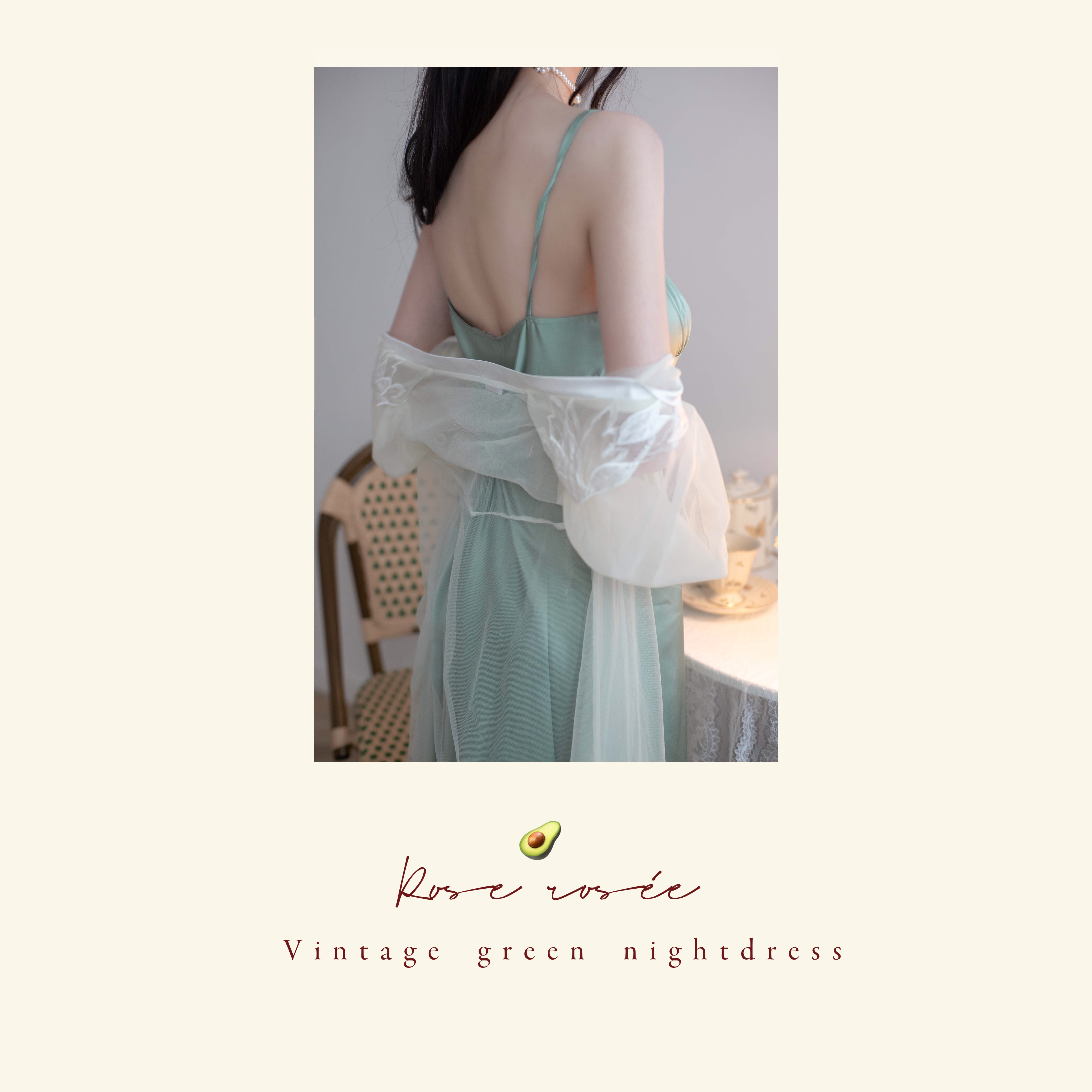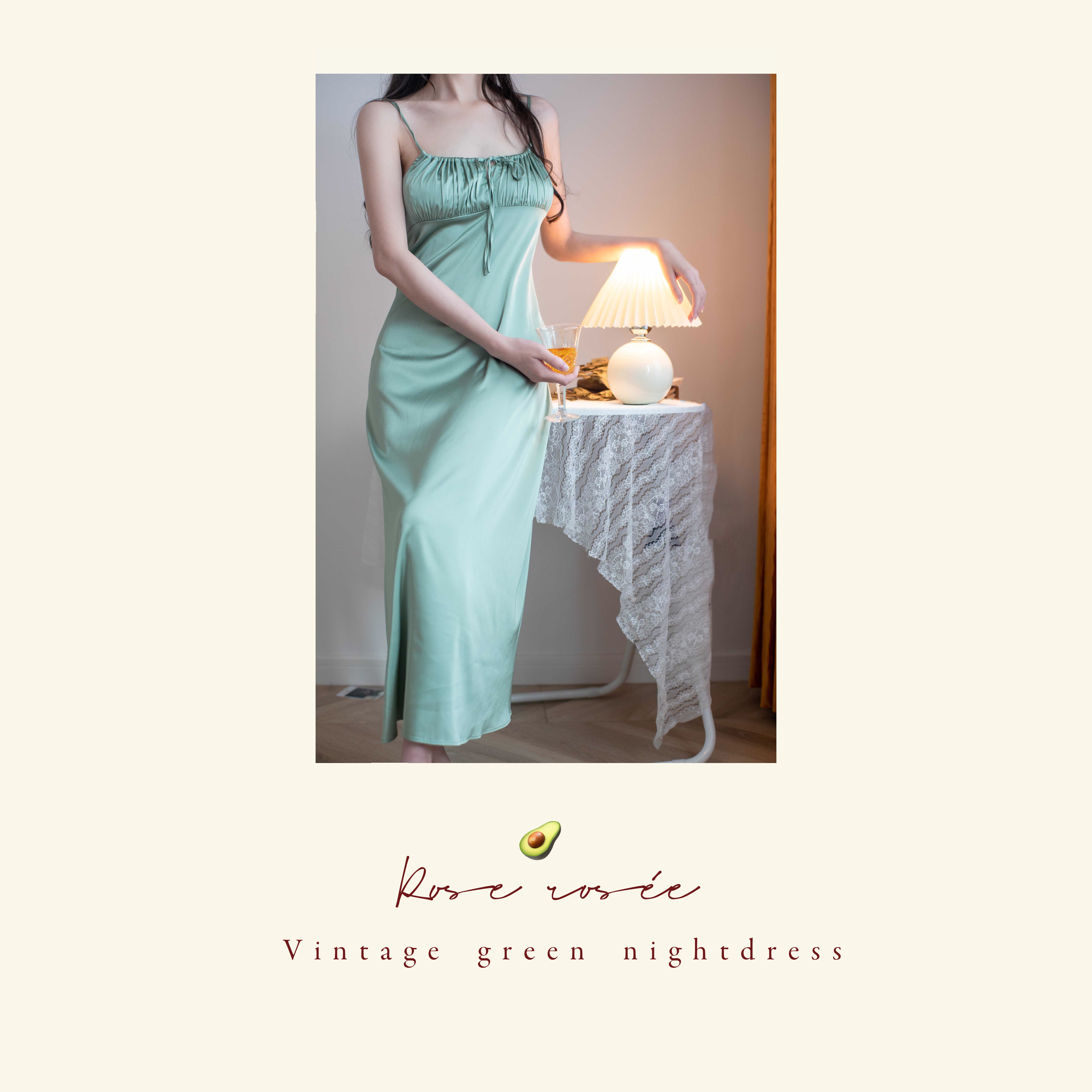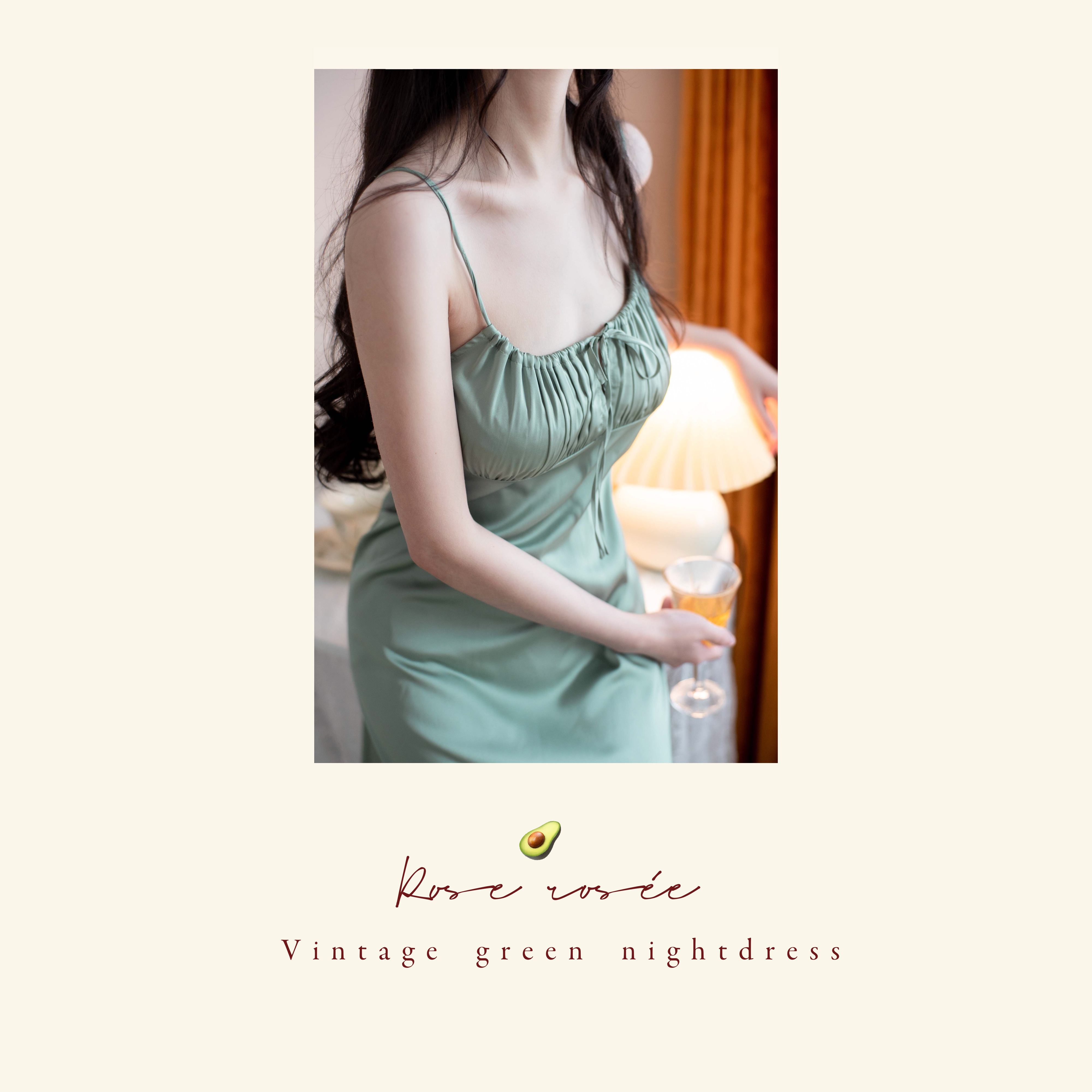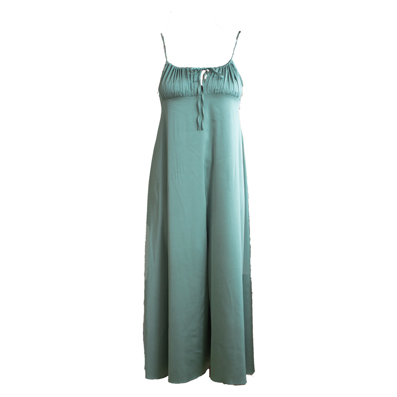 Rose rosée emerald emerald green pajamas women's summer retro dress silk tie sling long nightdress