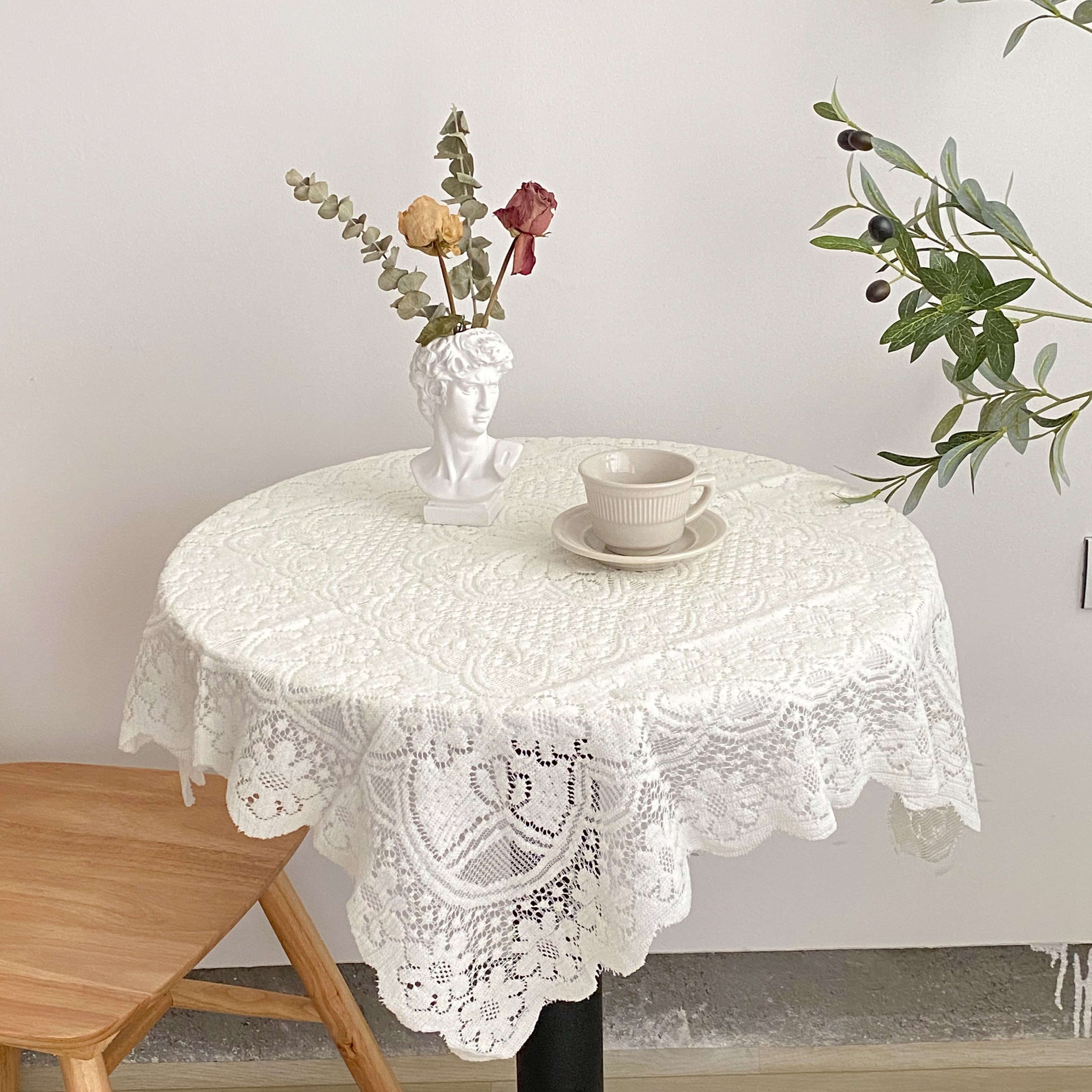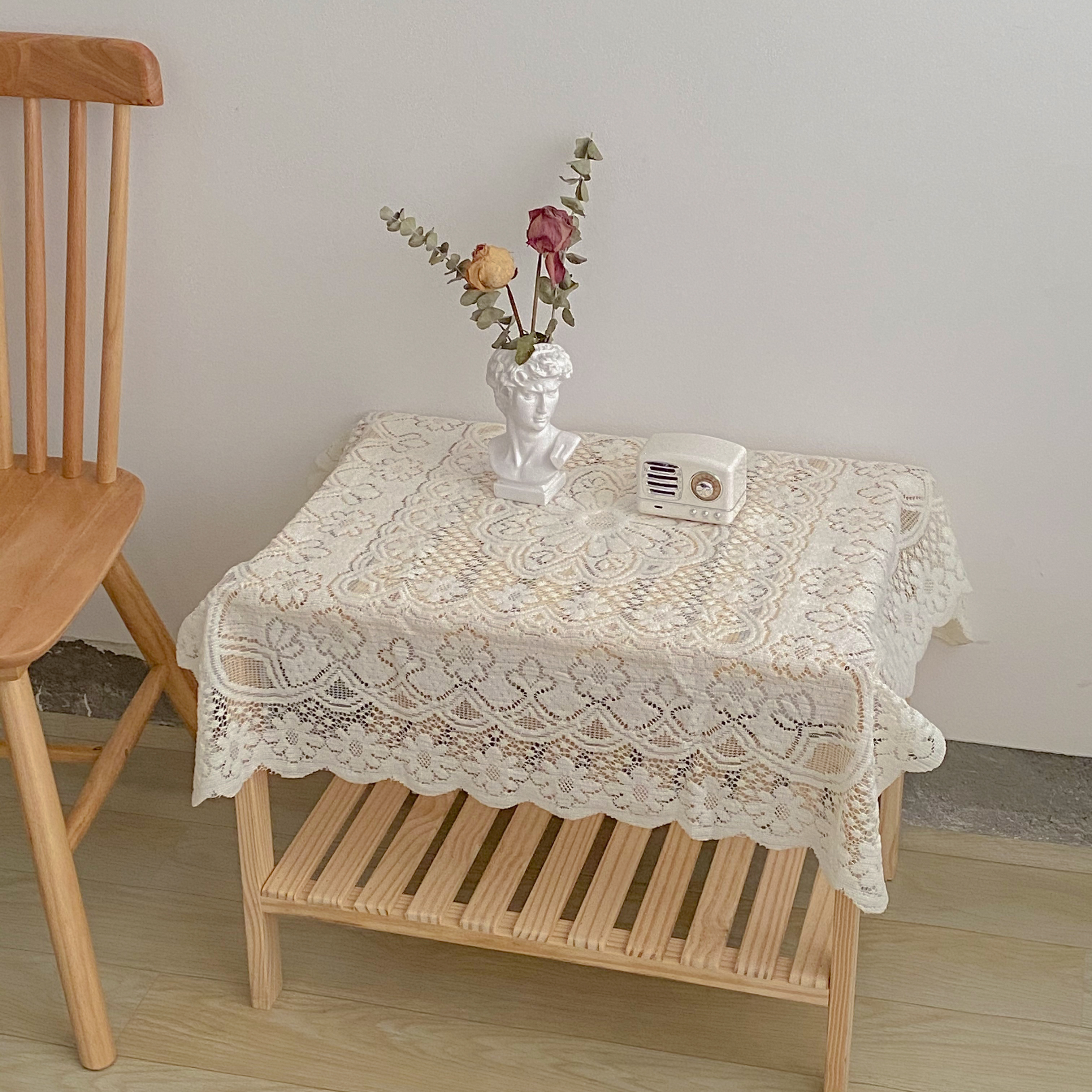 Lace Hollowed-out White Lace Tablecs Table Cloth Square Ins Wind Retro Tea Table Bed Head Cabinet Sofa Fridge Lid Cloth Cover