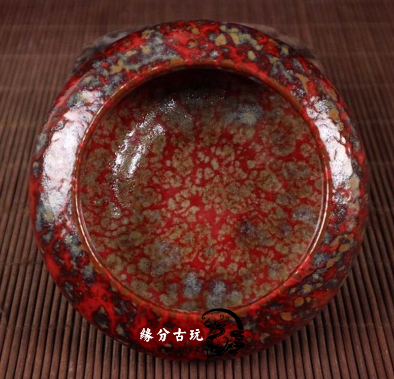 Antique porcelain collection Jingdezhen factory ceramic red glaze pen ashtray household ornaments antique porcelain