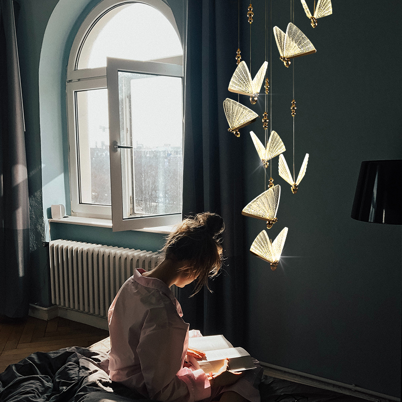 Butterfly chandelier single head small number (4 W neutral light) butterfly chandelier single head large number (6 W neutral light) butterfly chandelier 8 heads small number (32 W neutral light)