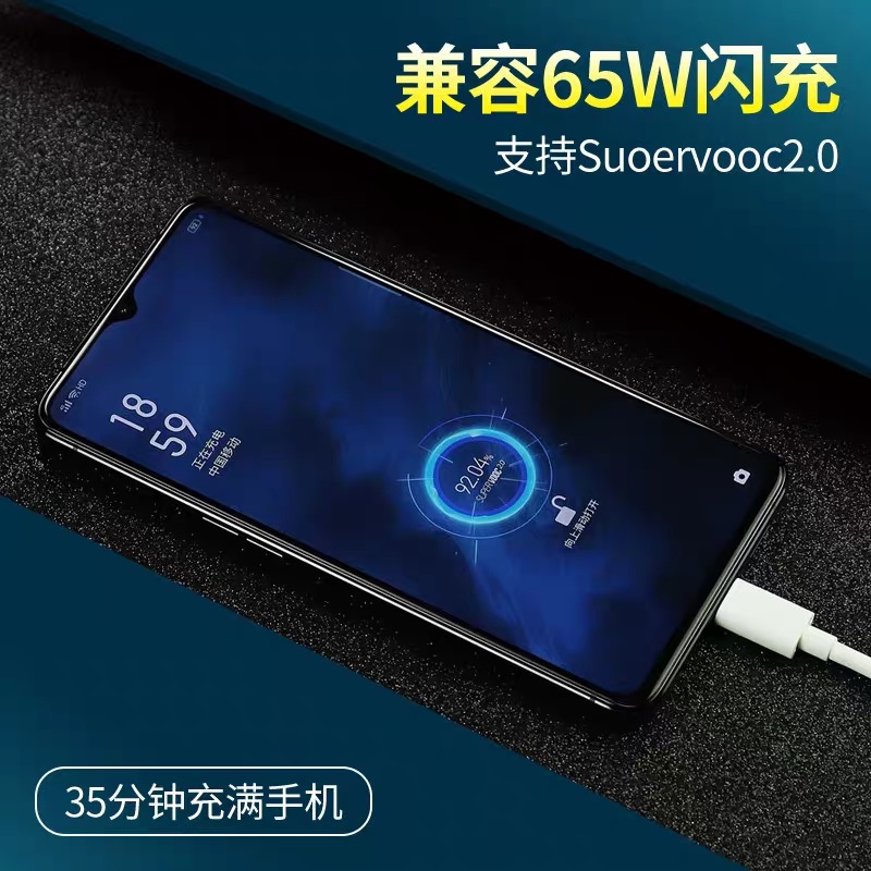 Suitable for OPPO Reno5 charger 65w super flash charging Reno5Pro fast charging plug 6 5a mobile phone data cable Reno4 Pro charging head charging cable extension 2