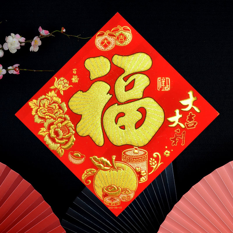 Fu word door sticker 2021 New Year Spring Festival New Year decoration high-grade flannel bronzing New Year Painter with door sticker New home into the house
