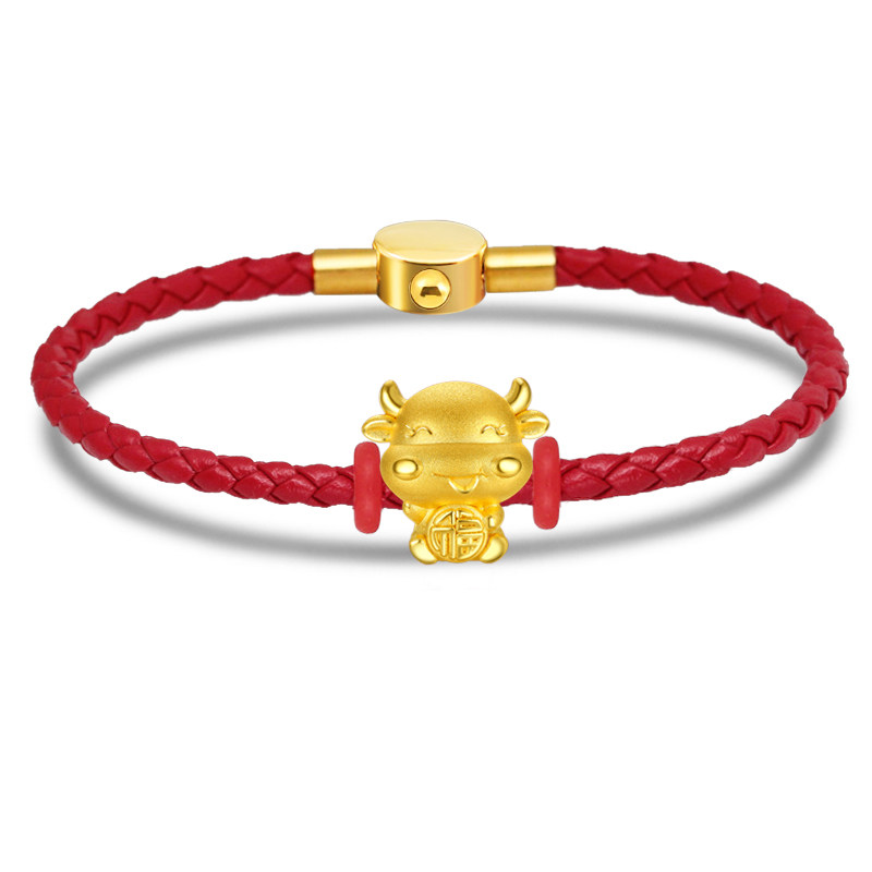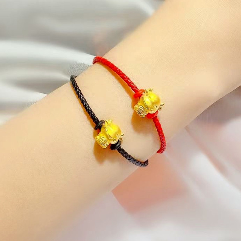 Transfer bead gold bracelet girl Xiao Funiu hard gold natal year gift red rope hand rope 999 pure gold small gold bull