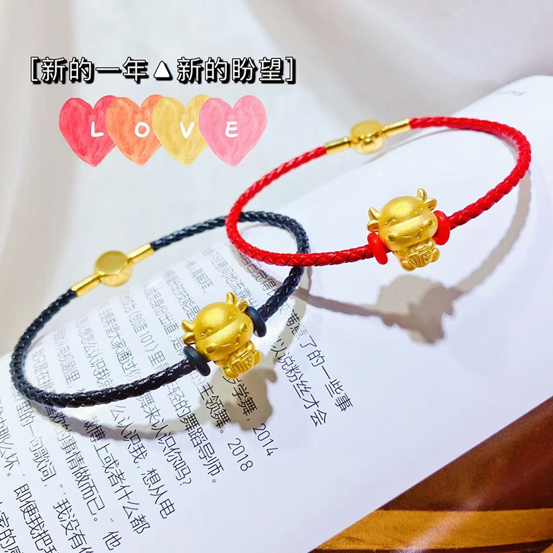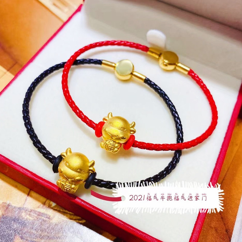 Fuqi cow red leather rope, gold weight about 0.9-1 1g, blessing cow black leather rope, gold weight about 0.9-1.1g