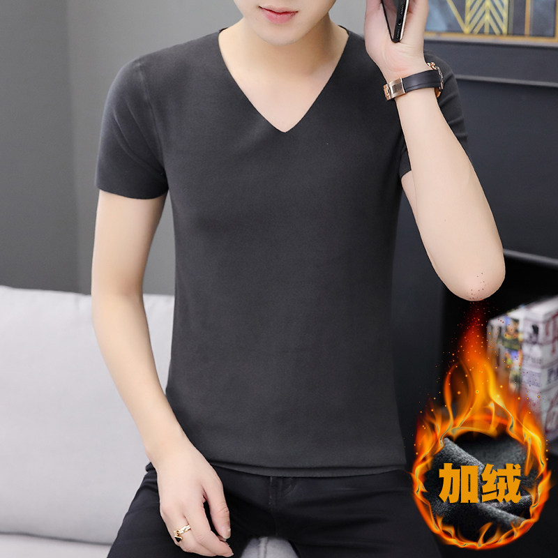 Heat Develvet white warm half-sleeve vest underwear men young wearing plug-thicken blouse men without trace