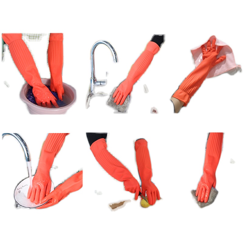 Rubber velvet latex extended thickened warm waterproof dishwashing laundry winter wear-resistant housework rubber cleaning gloves