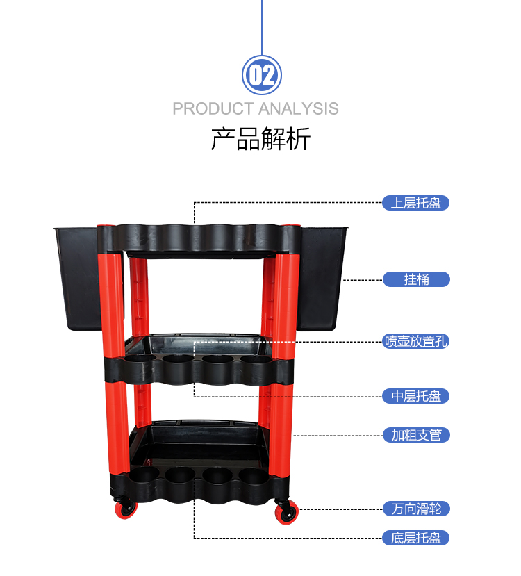 Washing Shop Car Beauty Tool Car Special Multifunction Plastic Triple Layer Mobile Containing Small Trolley Rack
