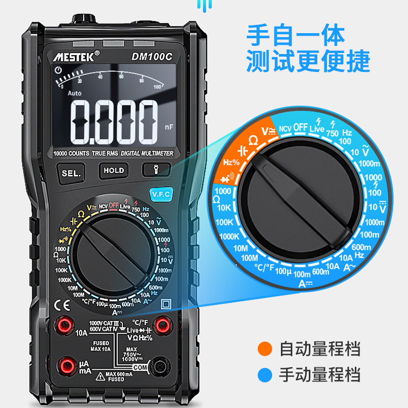 High speed intelligent multimeter digital high-precision fully automatic multifunctional small portable electrician anti-burn DM100C