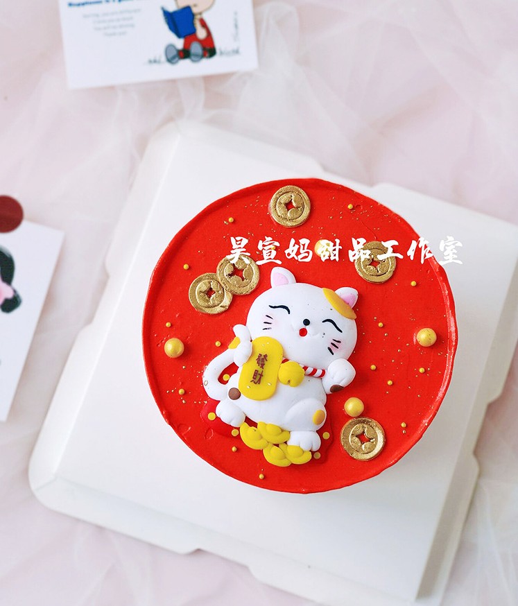 New Year's birthday cake baking decoration Cairou Fortune Cat Soft Pottery Plug-in Cute Cartoon-baked stylishly decorated