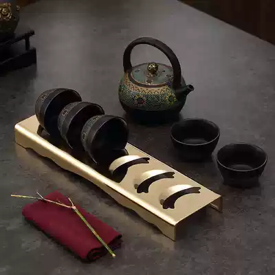 Pure copper tea cup holder Tea set cup holder Tea cup storage shelf Household Kung Fu tea set tea ceremony accessories creative simple cup holder