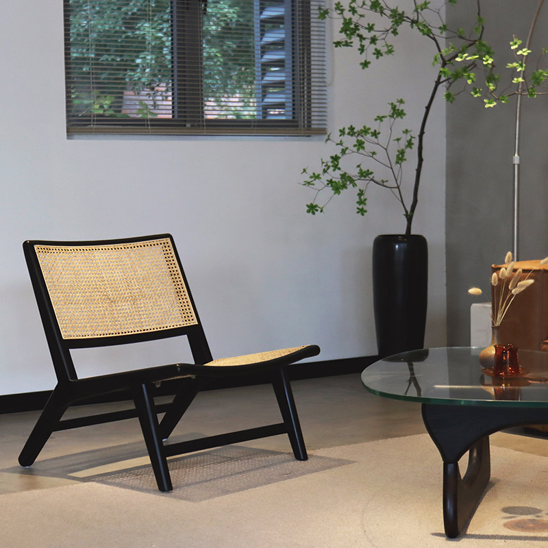Uniju) Modern Simple Nordic Solid Wood Single Rattan Leisure Chair Medieval Chair Net Red Rattan Chair Balcony Chair
