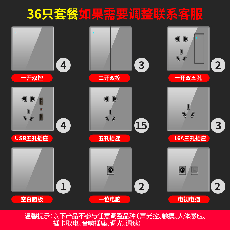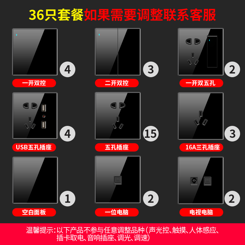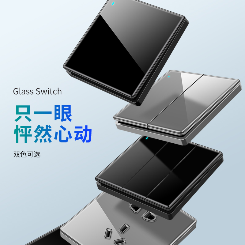 Type 86 international electrical wall switch socket panel dark decoration home black tempered glass mirror open five holes