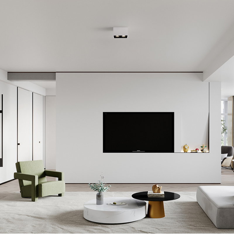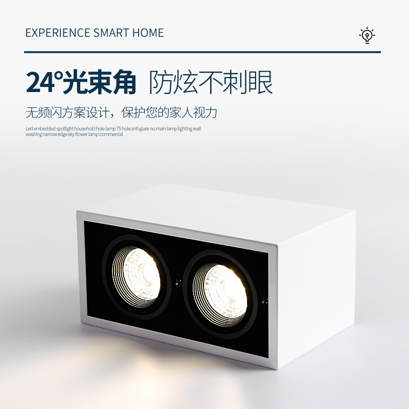 Living room without main light LED surface mounted spotlight household surface mounted downlight square box light grille double head COB bold light