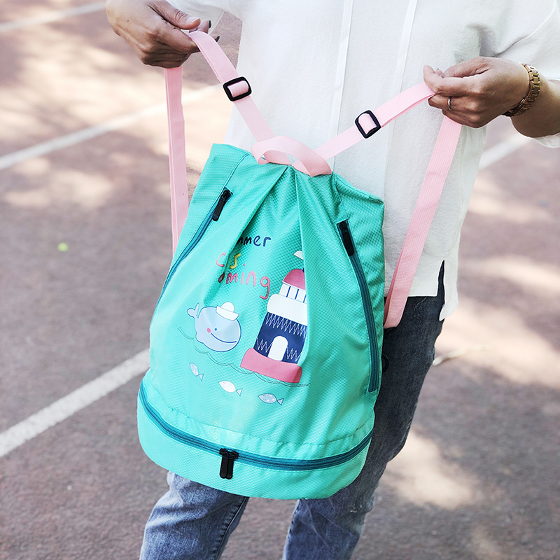 Children dry and wet double-use bunches mouth sports large capacity with shoe bin separating beach spa swimming waterproof shoulder bag