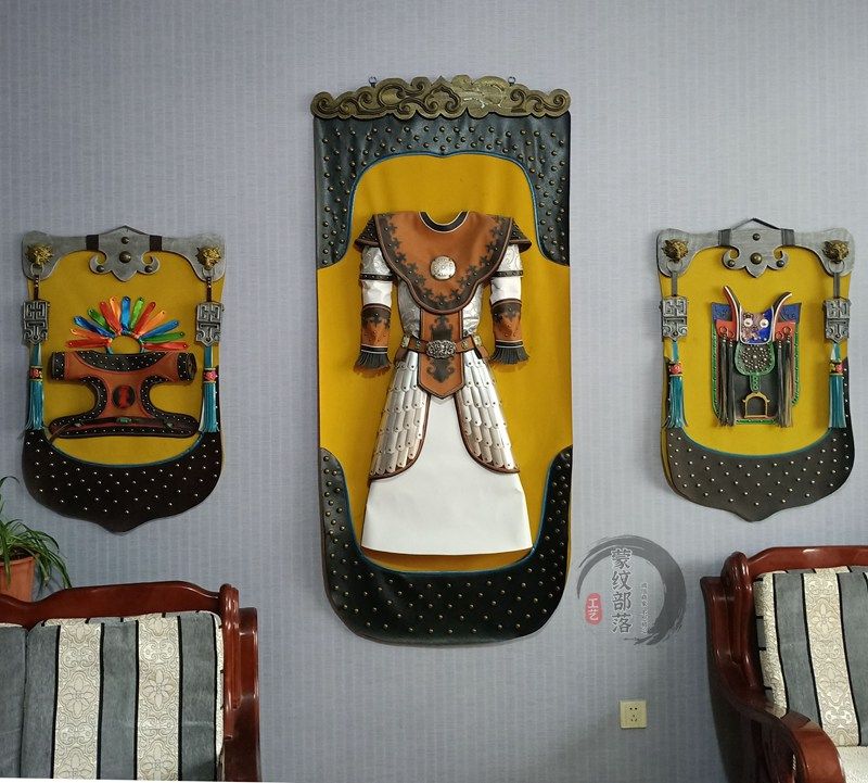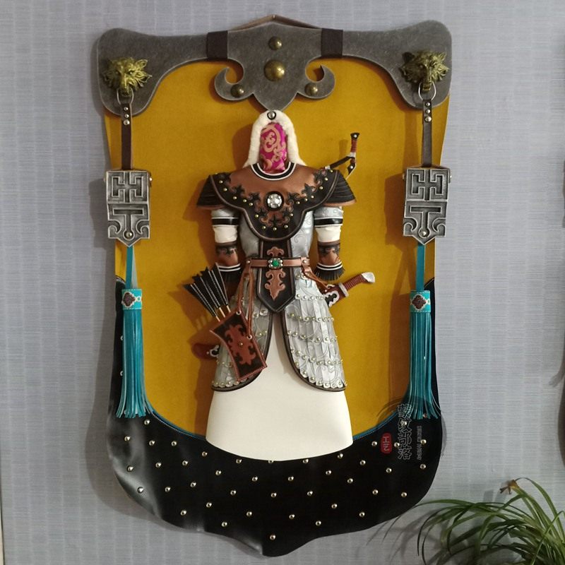 Mongolian leather painting Mongolian elements Genghis Khan decorative painting yurt hotel wall mural three-dimensional hanging painting ethnic style