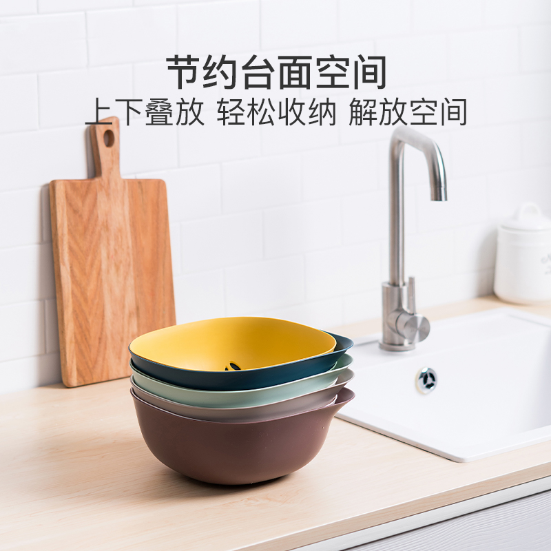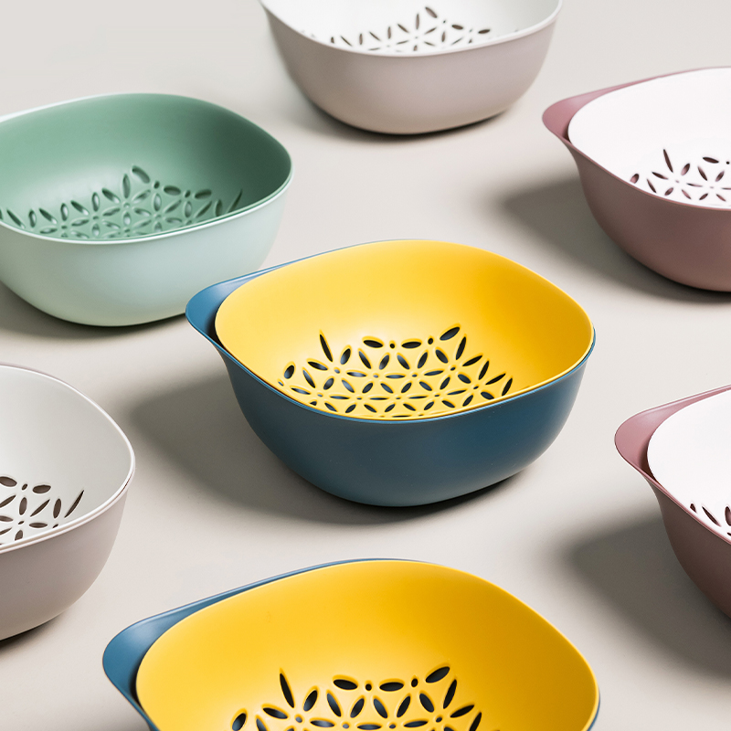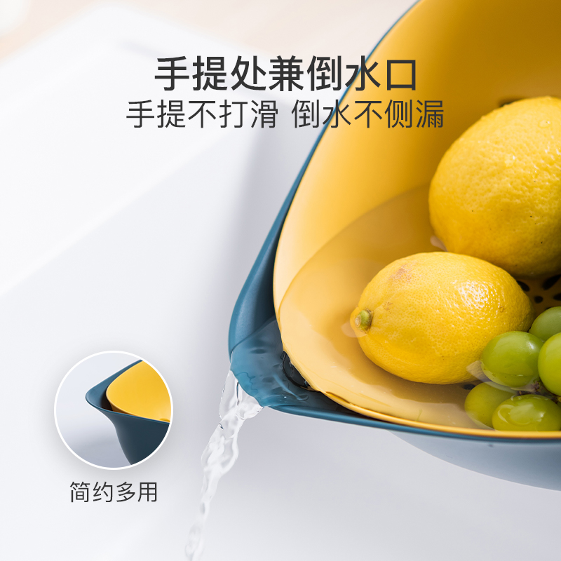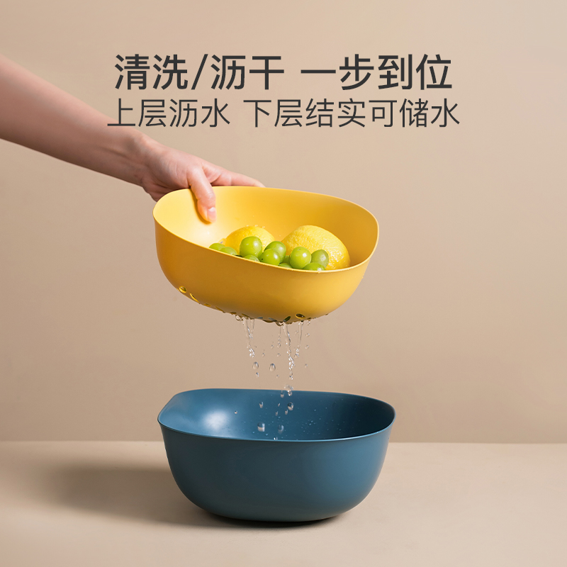Double Layer Hollowed-out Fruit Basin Wash Fruit Drain Basket Home Water Fruit Basket Creative Plastic Wash Vegetable Basket Kitchen Wash Basin