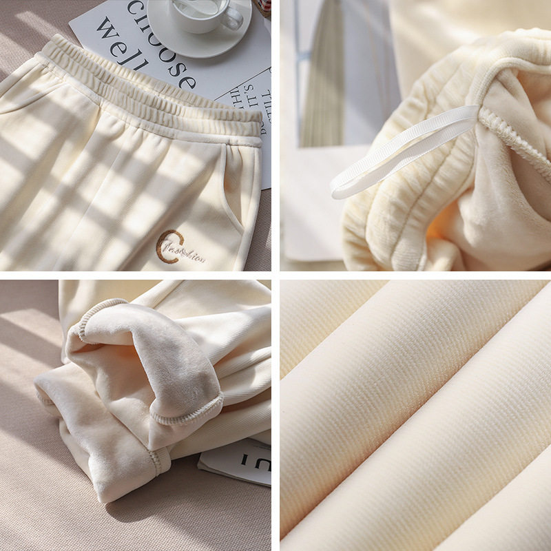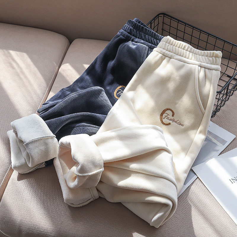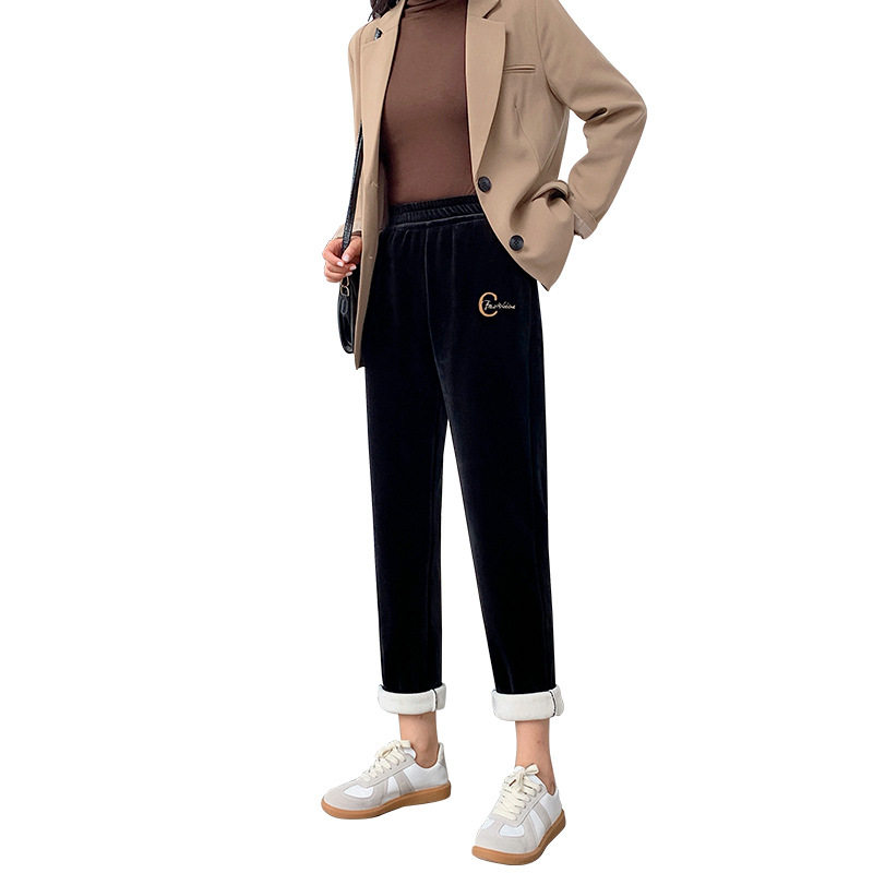 A ride all over the wardrobe~Autumn and winter high waist thin Harunga fluff pants women's slacks thickened