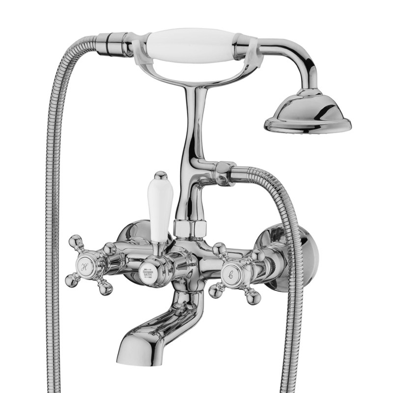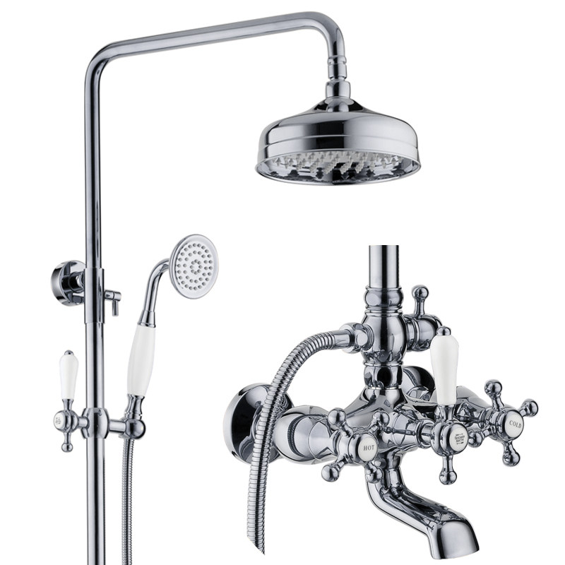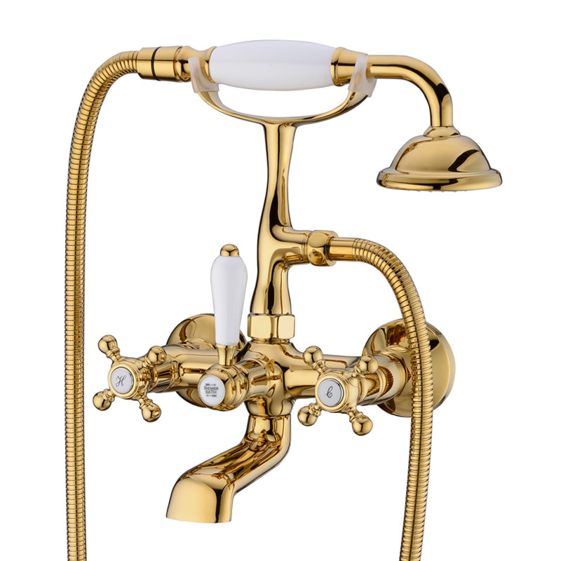 Retro gold shower set, European style ceramic handle, full copper English style chaise hot and cold bath faucet