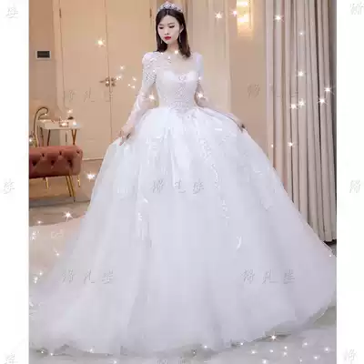 Long-sleeved main wedding dress 2021 new drag silk bride simple forest super fairy dream heavy industry autumn and winter