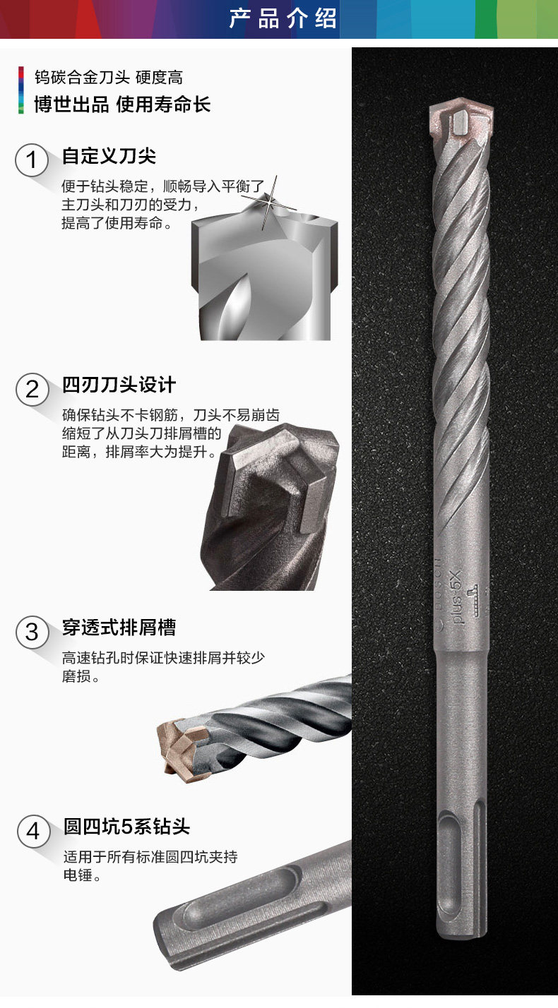 Bosch electric hammer drill percussion drill bit two pits two-groove concrete round handle four pit drill bit 5 series SDS-plus5X