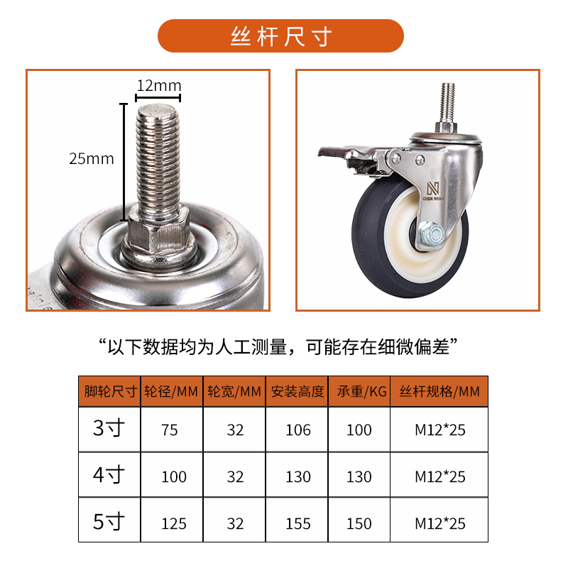 3-inch directional wheel 3-inch universal wheel 3-inch universal brake wheel 4-inch directional wheel 4-inch universal brake wheel 5-inch directional wheel 5-inch universal brake wheel