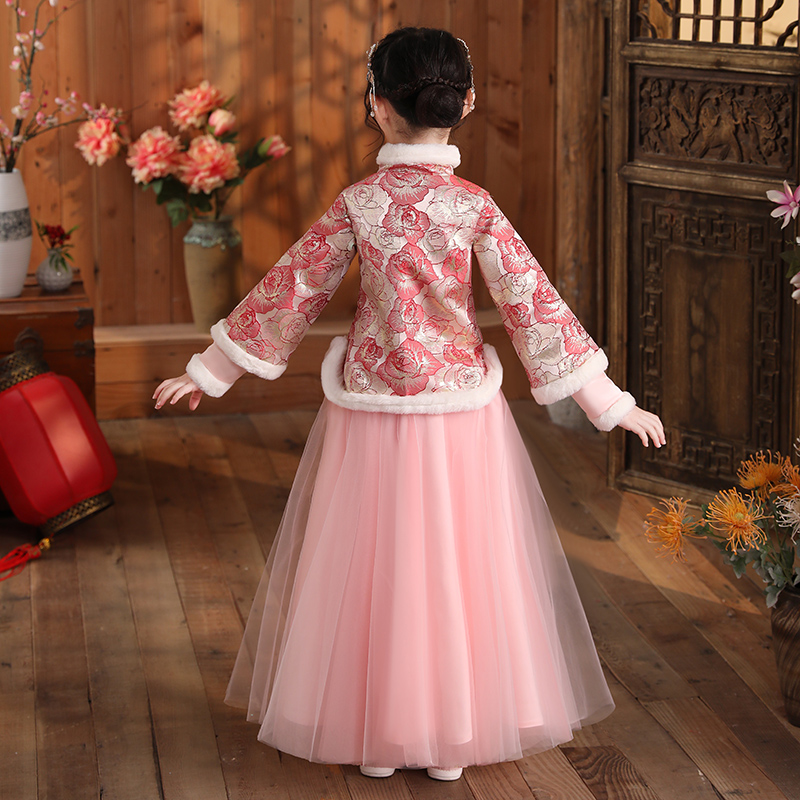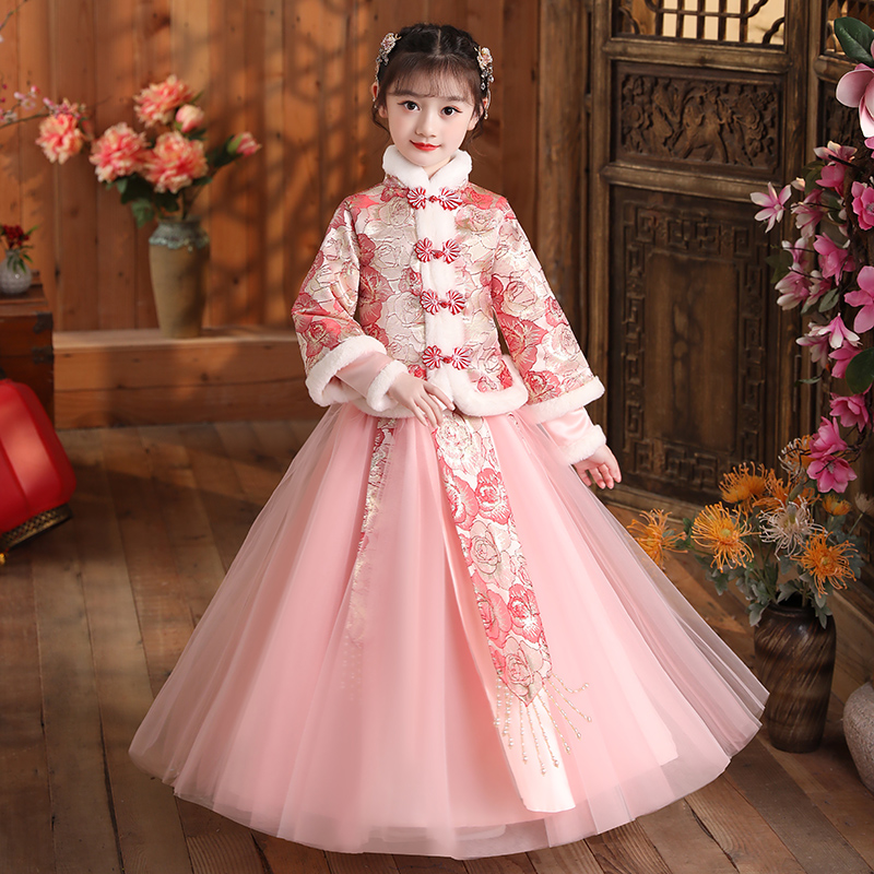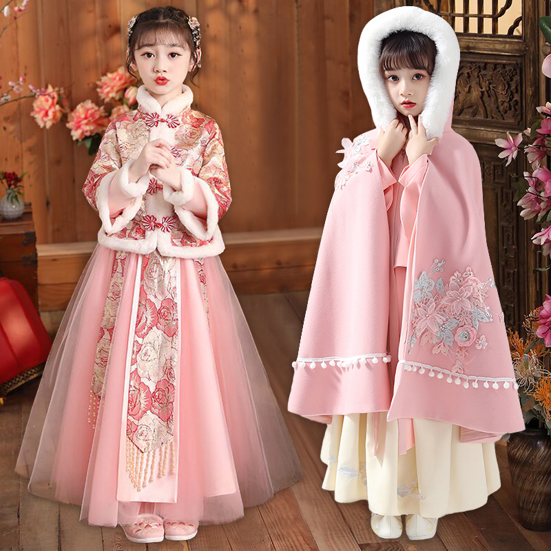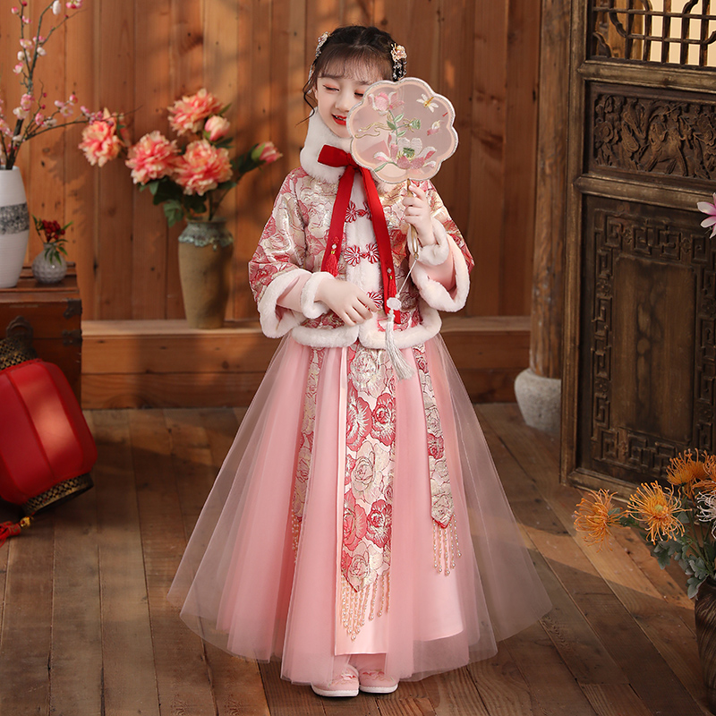 Hanfu girls costume super immortal children's New Year's greeting clothes Tang costume Chinese style girls thick autumn and winter dress New Year clothes
