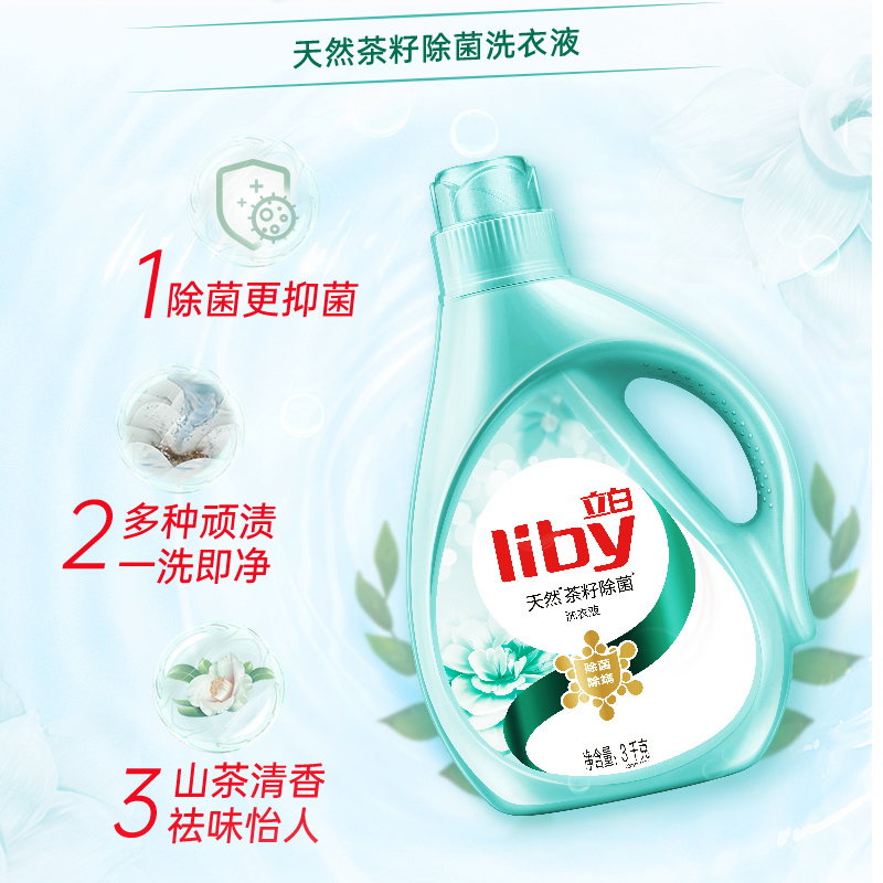 Liby 3Kg natural tea seed essence sterilization and mites mild decontamination easy to rinse and easy to wash natural fragrance laundry detergent