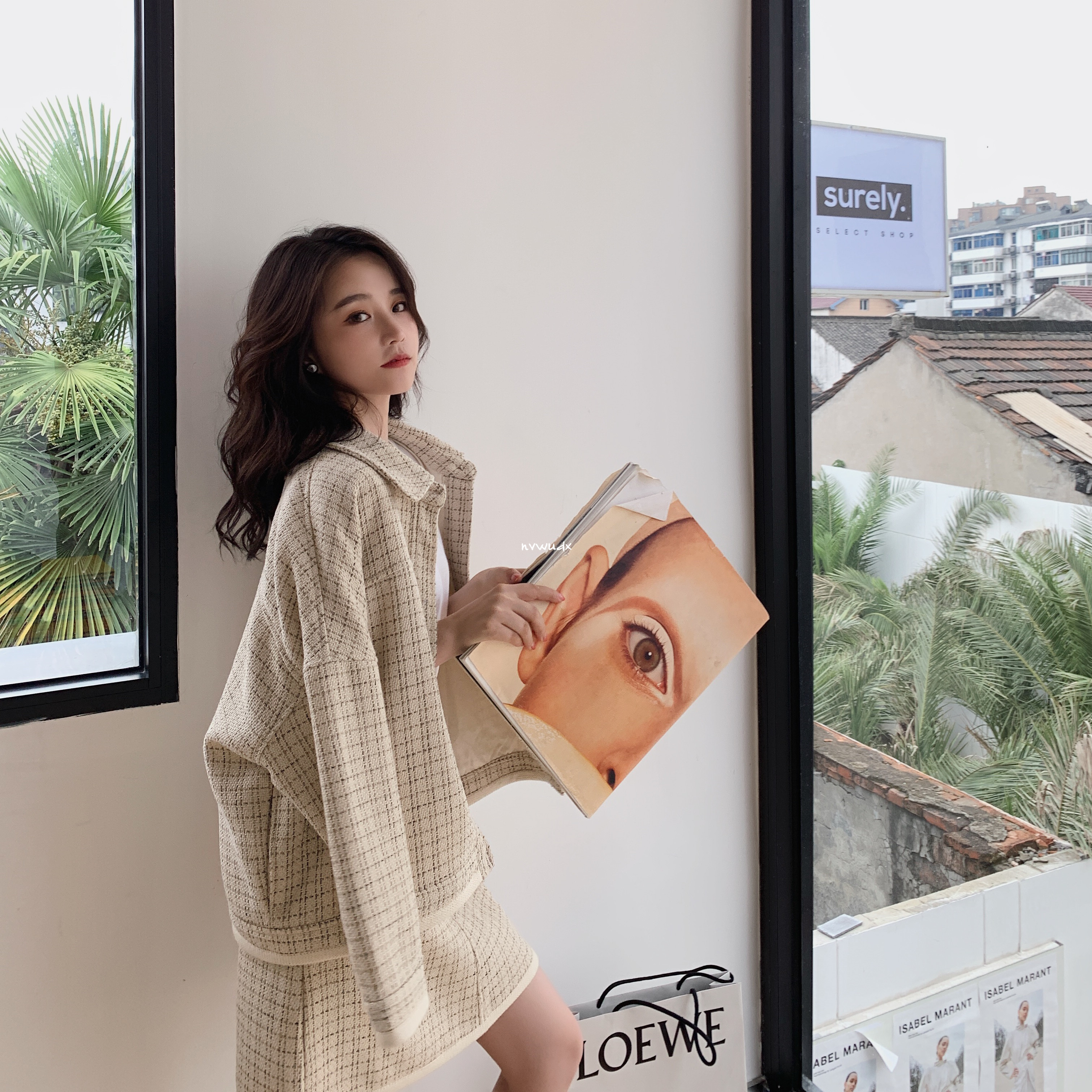sandro Duffy little fragrant wind jacket short dress fashion suit net red square collar temperament Korean version cardiovert blouse