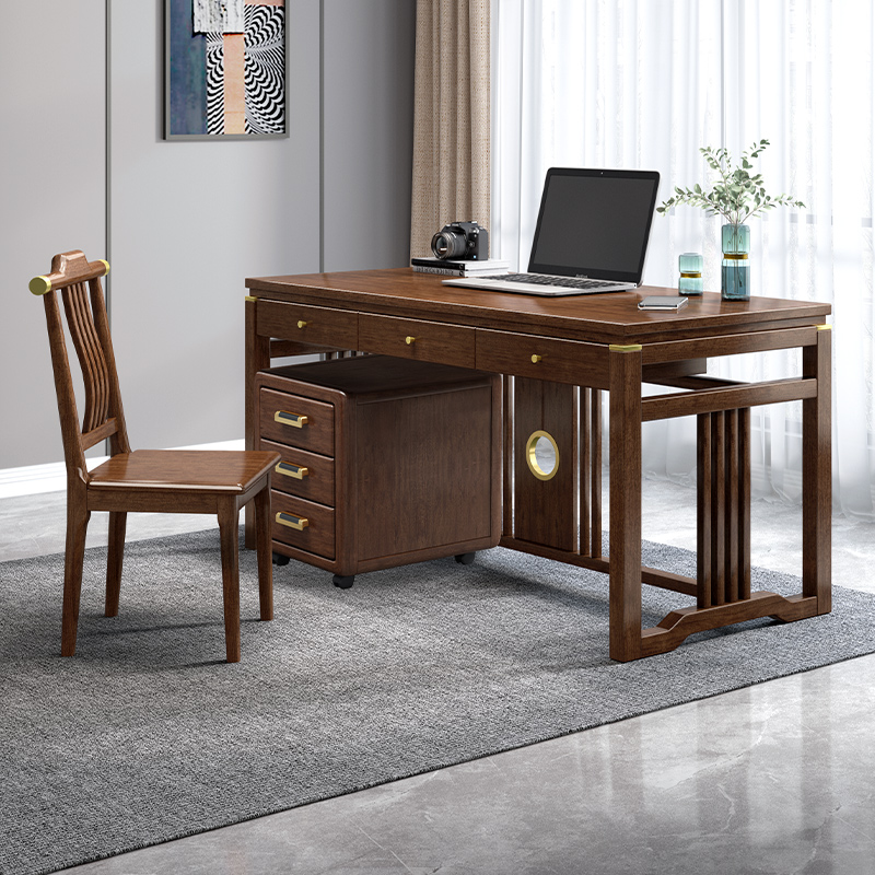 New Chinese Solid Wood Desk Desk Desk Computer Desk Light Lavish Walnuts Wood With Drawers Calligraphy And Calligraphy Calligraphy Table Book Room Table