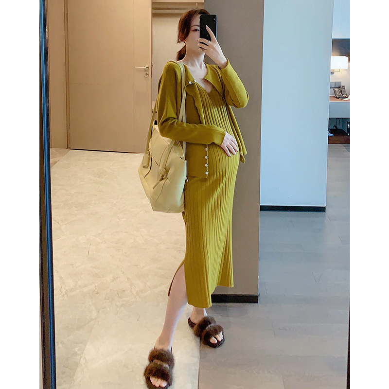 MYL high-end maternity pure wool slip dress long sleeve cardigan two-piece dress