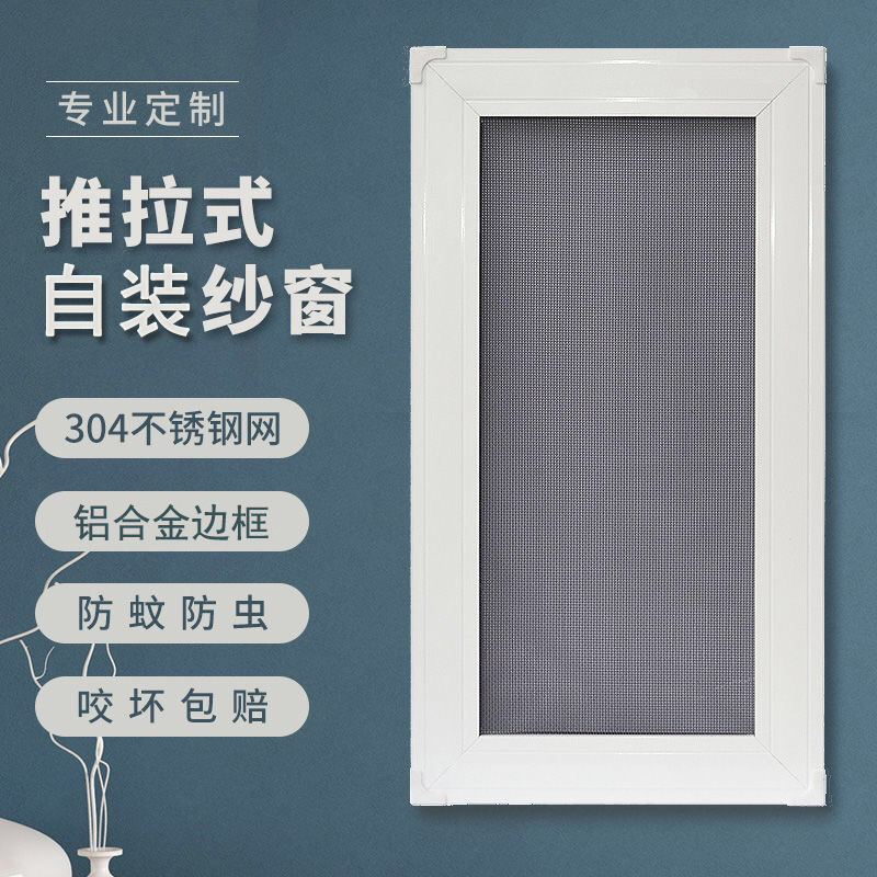 The screen window can be pushed and pull customized to do aluminum alloy self-installed stainless steel mesh anti-mosquito plastic steel sand window frame translation