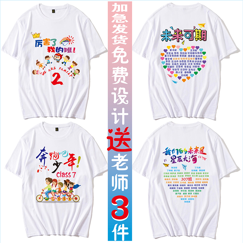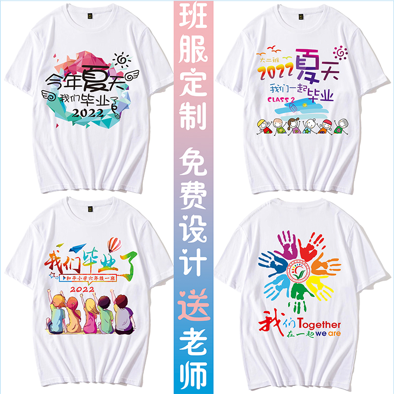Graduation Class Clothing Customised T-shirt Elementary School Kids Games Kindergarten Pure Cotton Round Collar Short Sleeve Children Diy Culture Shirts