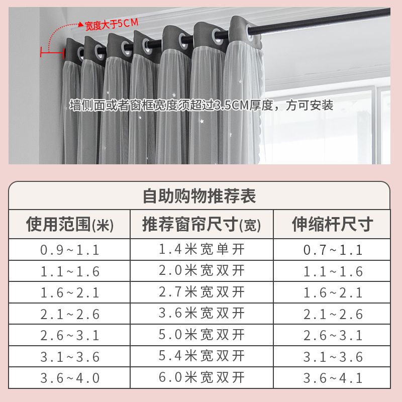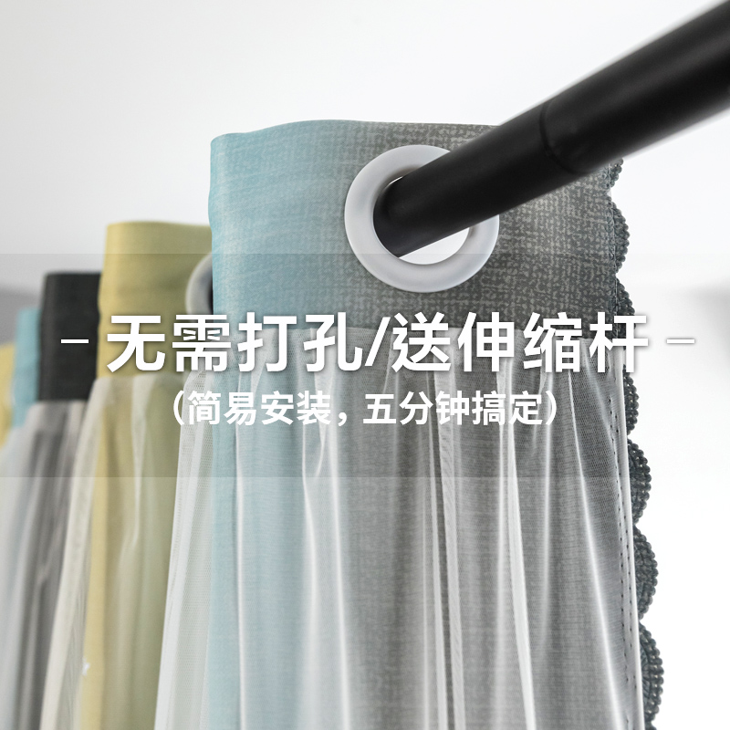 Telescopic Rod curtain cloth non-perforated installation 2020 new bedroom shading window simple Nordic simple sunshade