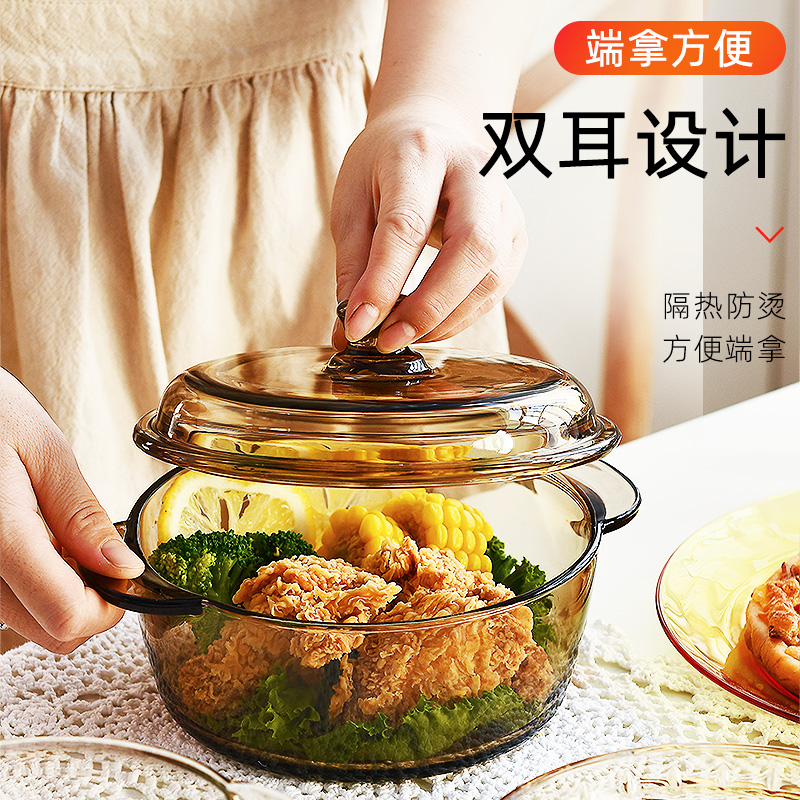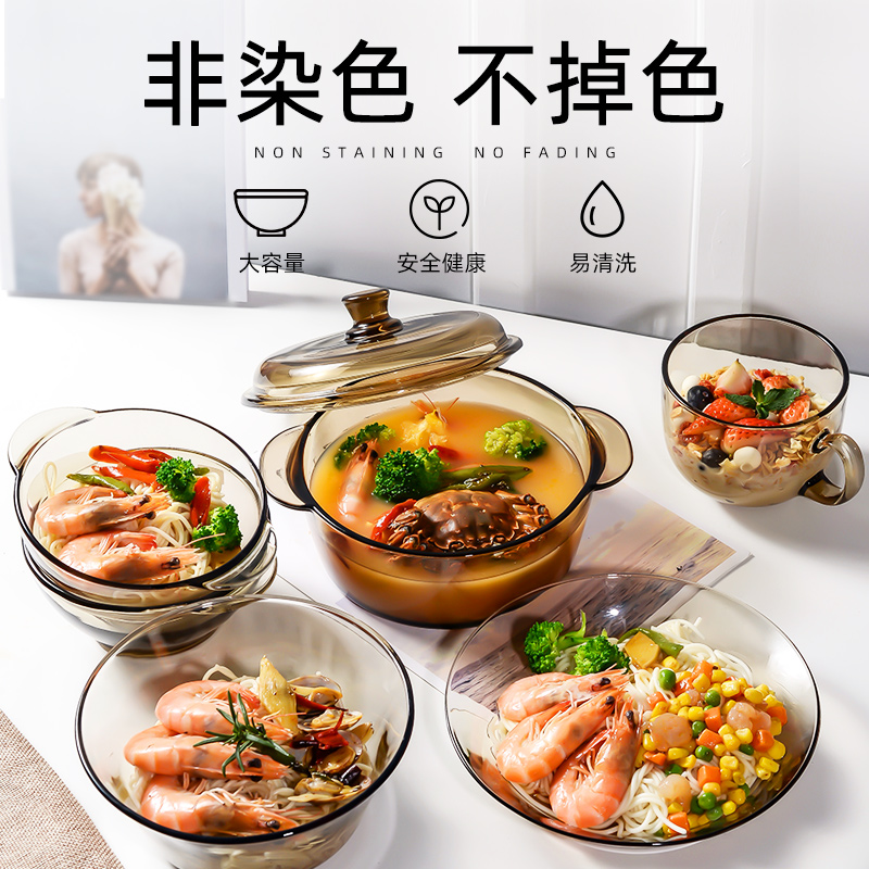 Double ear glass bowls Tea color bowls Dish Suit Fruit Salad Bowl Home High Temperature Resistant Soup Bowl Bowl Rice Bowl bowls Cutlery