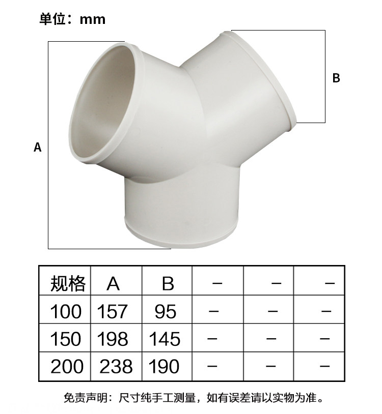 White 100mm Y type tee white 150mm Y type three-way white 200mm Y type tee