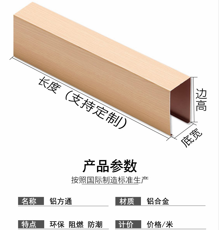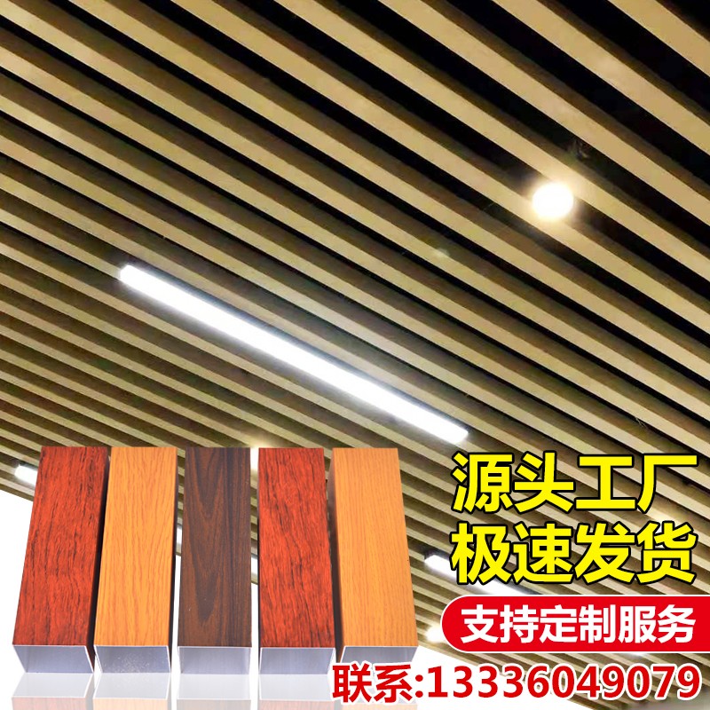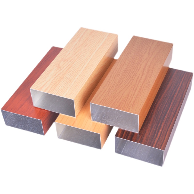 Aluminum square pass suspended ceiling Wood grain square tube Alloy profile U-shaped grille Hollow tube Partition column Outdoor partition material