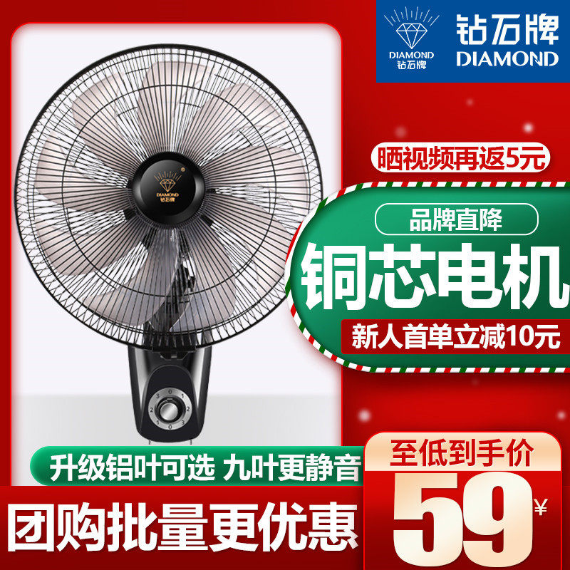 Diamond brand Wall fan household shaking head silent hanging fan Remote Control Wall fan large wind wall mounted electric fan hanging wall fan