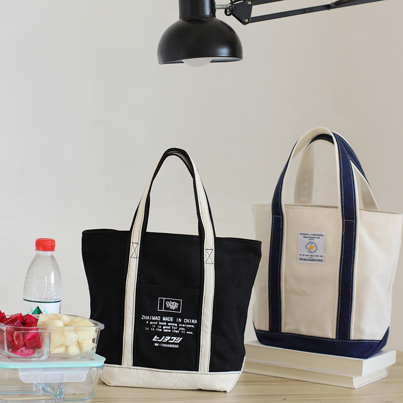Zipper office worker tote bag bento with bento bag Japanese rice bag simple Mori canvas bag to go out fashion