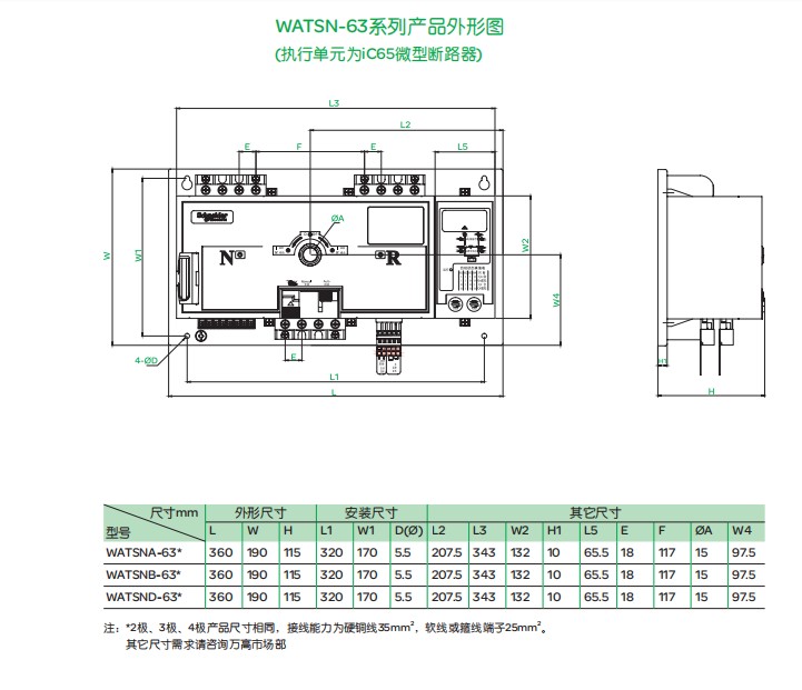Schneider Wan High Dual Power Automatic Switching Device WATSNA4P63A Power Supply CB Level 2P3P40A