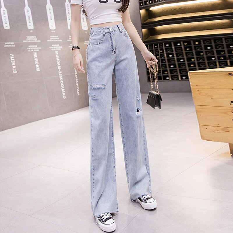 Special Cabinet Mall Withdrawal International Big Card Cut Mark Yu single-tailed single jeans Spring and autumn thin section Hole Straight Drum Wide Pants