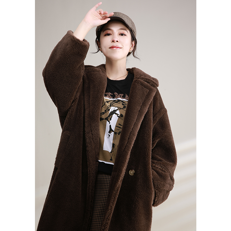 NZ classic M home teddy pink teddy bear coat women's loose profile full wool winter coat thickened to keep warm