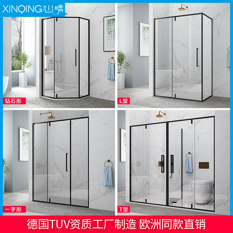 Custom narrow-sided stainless steel diamond type toilet glass door black shower room partition wet and dry separation bathroom