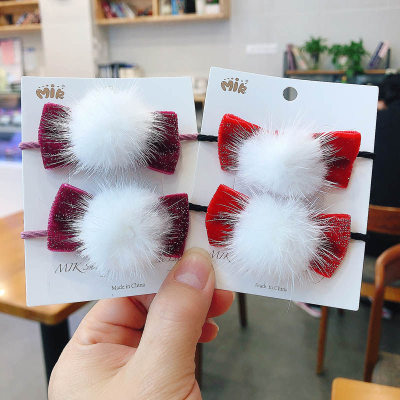 Ishikawa impression boutique handmade hair accessories Hair ball velvet bow children's hair ring A pair of baby hair ring hair accessories