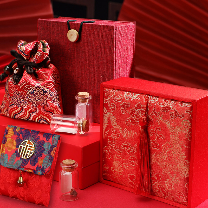 Flow Su Bamboo Box 2 Fetal Hair Bottle Treasured Brocade Box 3 Fetal Hair Bottle Sunflower Ruyi Fu Bag 3 Fetal Hair Bottle Wave Red Ruyi Fu Bag 3 Tire Wool Bottle Dragon Tattooed Box Auspicious Brocade Bag Wood Button Linen Cloth Box Mascot