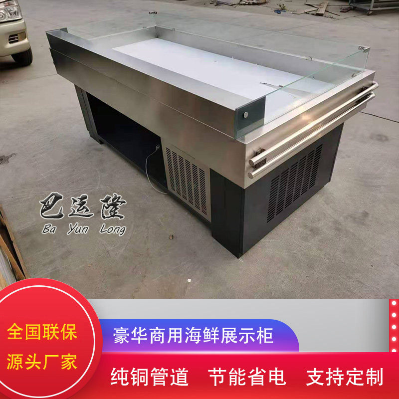Seafood ice table display cabinet commercial stainless steel ice table supermarket seafood freezer aquatic frozen fresh-keeping horizontal cabinet